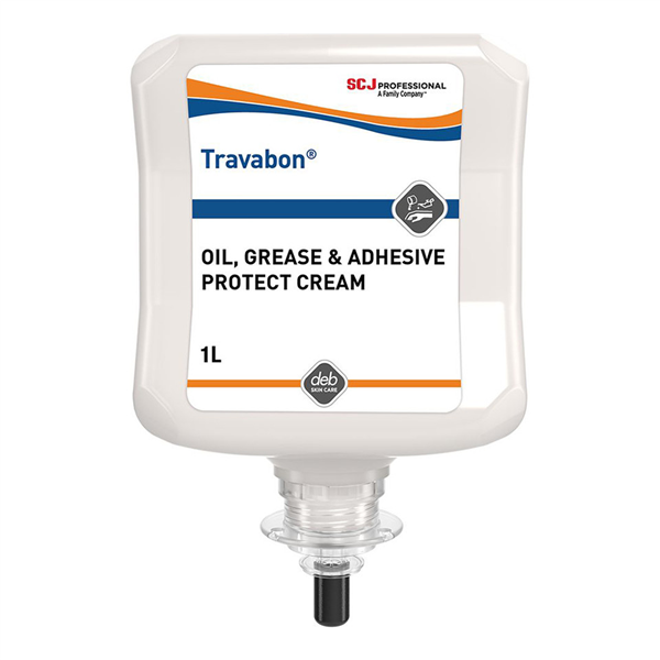 Deb Travabon Classic Cream 1L is a premium pre-work skin protection cream designed to protect hands from industrial contaminants like oils, greases, paints, and other water-insoluble substances