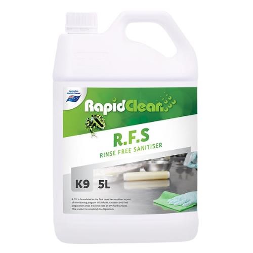RFS is specifically used as the final rinse sanitiser at the end of the standard kitchen and food processing cleaning program
