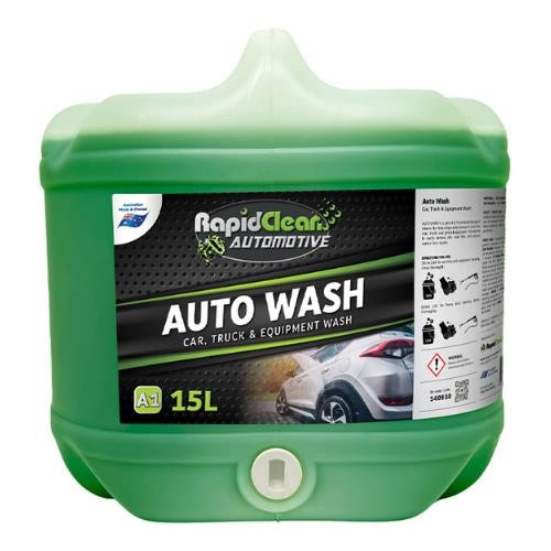 RapidClean Auto Wash is a concentrated detergent formulated for cleaning cars, trucks and general equipment — designed to remove dirt, road film, exhaust carbon, grease, oil, mud and grime from vehicle exteriors and heavy-duty equipment surfaces