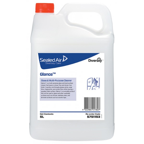 Diversey Glance 5L is a high-performance glass and surface cleaner designed to deliver streak-free results on shiny surfaces