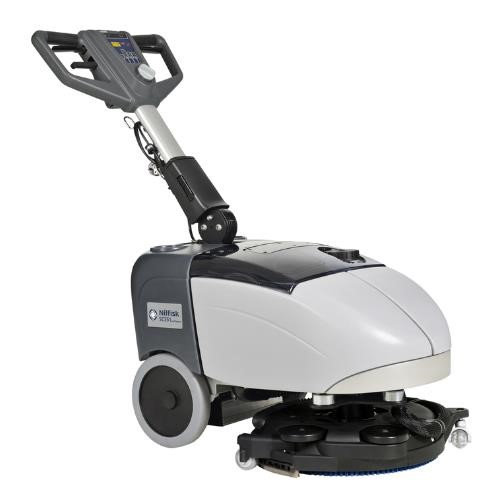 is a compact, battery-powered scrubber-dryer designed for tight, congested spaces