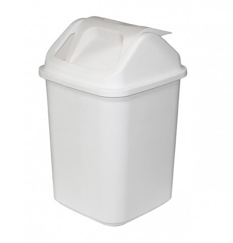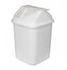 The white polypropylene body provides strength and easy-clean performance, while the swing-top lid ensures quick and hygienic disposal