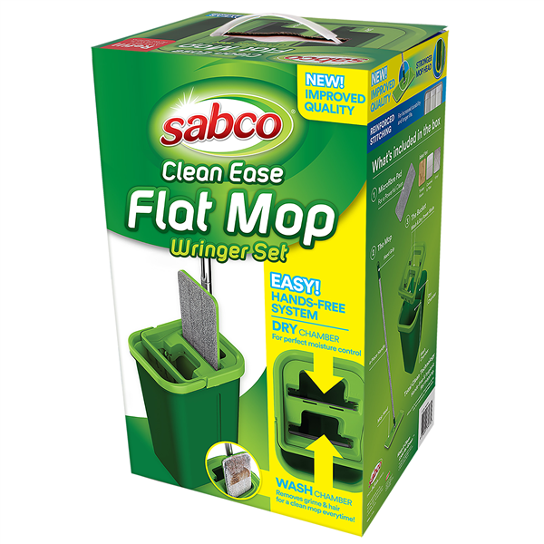 – uses Sabco Clean Ease microfibre flat mop refills for continued performance