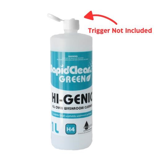 Designed for refilling with Rapid Clean Hi-Genic washroom cleaner for use on basins, tiles, toilets, urinals, and other hard surfaces