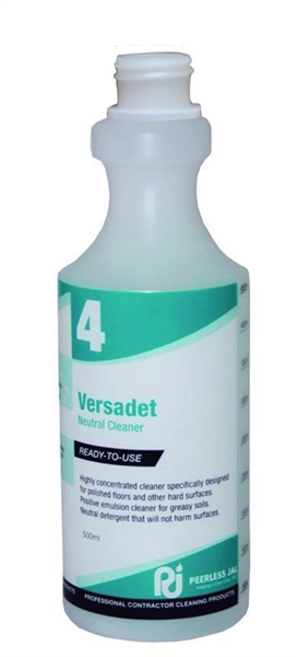 is a durable, pre-labelled refill bottle designed for use with the Peerless Versadet cleaning solution