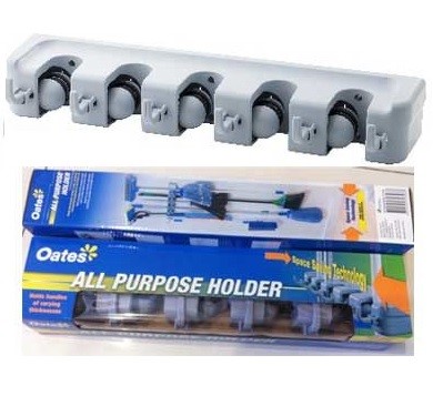 This Oates All Purpose Brush Holder securely holds handles of varying thicknesses so you can tidy and store your brooms, mops, gardening tools and more