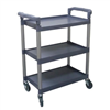is a three-tier service cart designed for commercial cleaning, hospitality, healthcare and facility operations