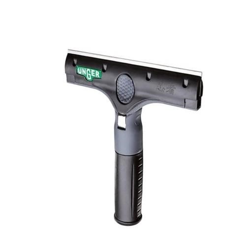 It fits securely to poles with the Unger Locking Cone (UNNCAN0) for extended reach and includes a premium stainless steel glass scraper blade for superior durability and performance