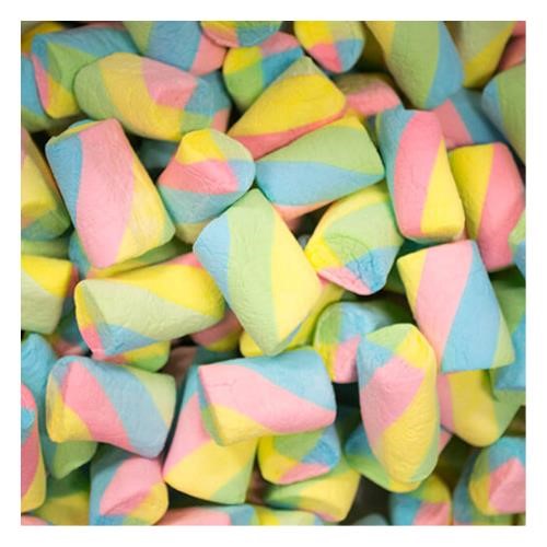 Large Rainbow marshmallows, Twists of blue, pink, green, yellow mallows