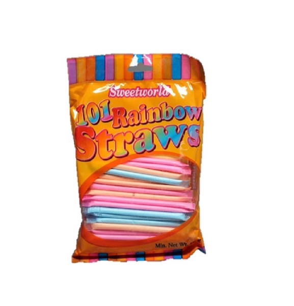 Sweetworld's Rainbow Coloured sherbet straws available in a 160g Pack containing 101 Straws.