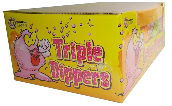These Triple dippers are great, They come with 2 compressed candy sticks and 3 seperate flavoured sherbet dips