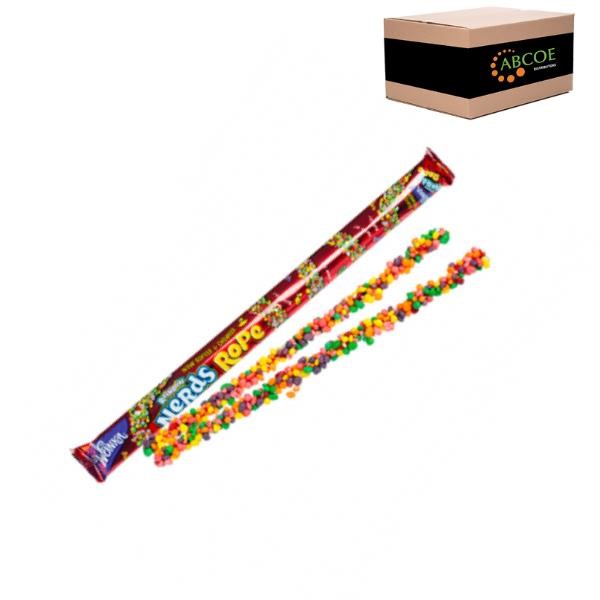 Wonka Nerds Ropes is a soft gummy roped covered with tiny, tangy, crunchy rainbow flavoured nerds