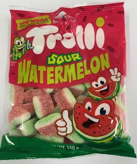 Trolli Sour Watermelon Slices are a mouth-puckering burst of fruity delight, shaped like juicy watermelon wedges and dusted with a tangy sugar coating