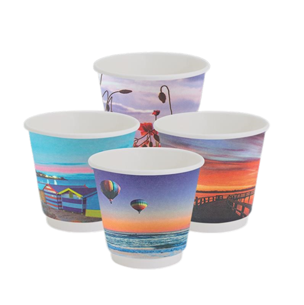 8oz True Fill Double Wall Smooth PLA Postcard Series Hot Cup 86.5mm