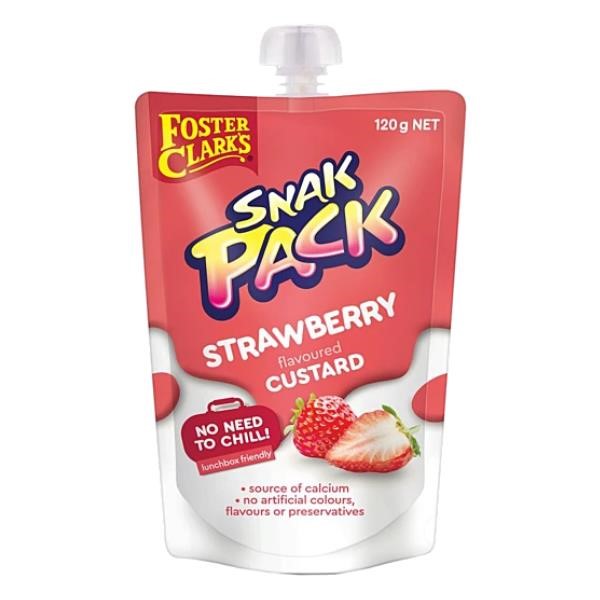 A strawberry flavoured custard in a convenient pouch - what's not to love? Foster Clark's Snak Pack Strawberry Flavoured Custard is a lunchbox friendly custard