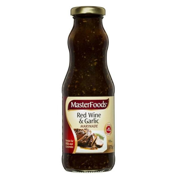 MasterFoods Red Wine & Garlic Marinade blends chopped garlic and a splash of red wine to create this full-bodied marinade