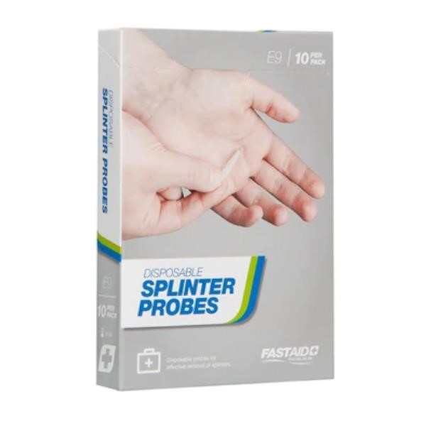 Disposable splinter probes with long tips and plastic handles for effective removal of splinters.