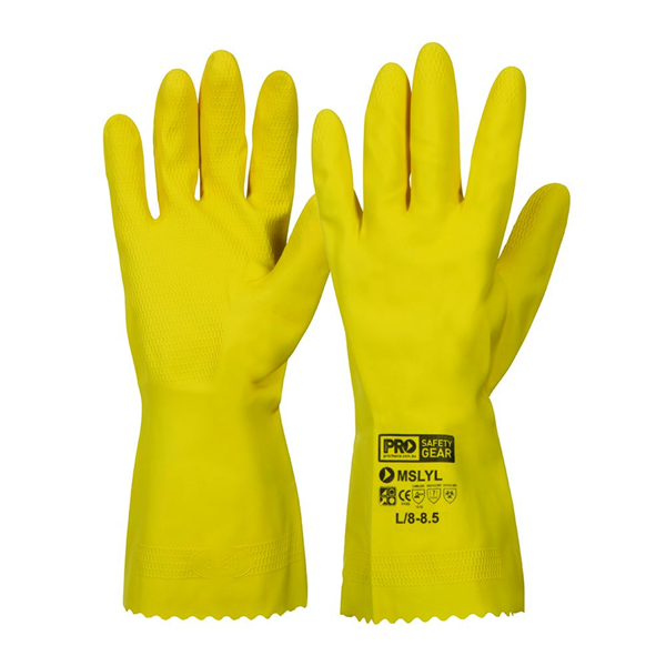 Premium Latex rubber food handling gloves Nitrile blend for improved fat and abrasion resistance Silver lined for easy slip on 30cm length Minimal latex protein content to avoid latex allergy reaction Qty/Pack - 12 Pairs Individually packed and sanitised to guarantee cleanliness and to inhibit bacterial growth Qty/Carton - 144 pairs Available in Blue or Yellow Available Sizes - S, M, L, XL, 2XL