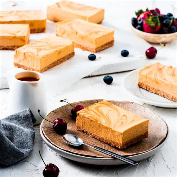 French Kitchen Cheese Cake Round Caramel - smooth & creamy with a sweet classic caramel taste and biscuit base, a hit for both young and old