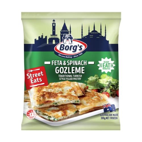 Borg's Feta & Spinach Gozleme is a traditional Turkish style filled pastry