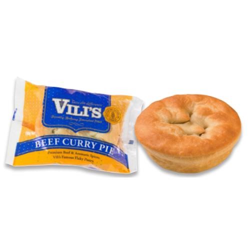 Vilis Curry Beef Pie has tender lean beef and tasy dry spices, including cumin, coriander, chilli, fenugreek, turmeric, fennel, garlic & ginger