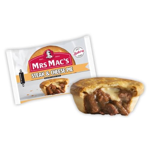 A chunky steak pie with a rich meat gravy topped with a generous serve of creamy cheese encased in crisp golden brown pastry