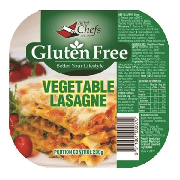 Allied Chef Lasagne Vegetable Gluten Free 200g
