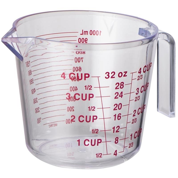 Ideal for both dry goods and liquids, it features calibrated measurement markings in millilitres, ounces and cups to accommodate any recipe 1L capacity BPA free Calibrated to Australian measuring standards Millimetre, ounce and cup measurements Pouring spout Dishwasher safe – top shelf