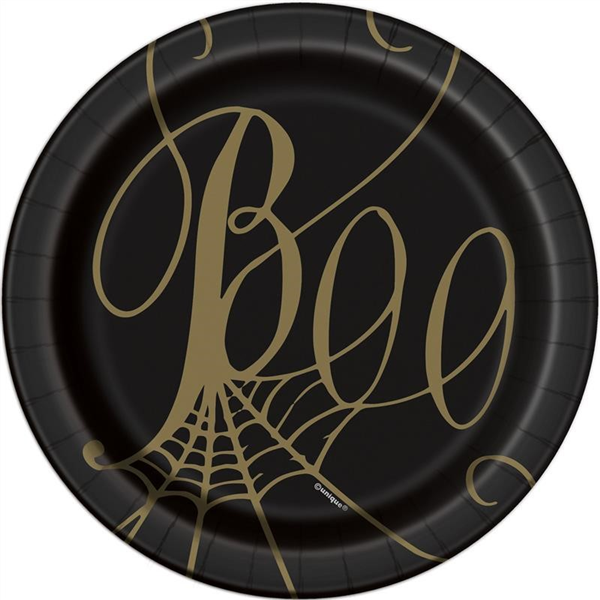 Halloween Blk & Gold Spider 7" Plate 8pk