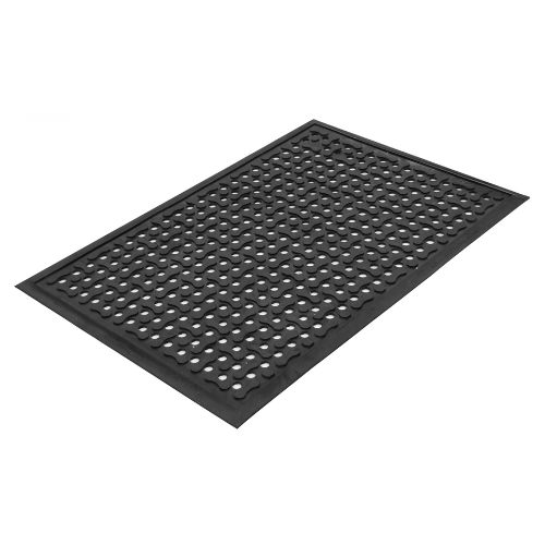The holed construction allows water, debris and liquids to pass through the surface, helping to keep the standing area cleaner and safer