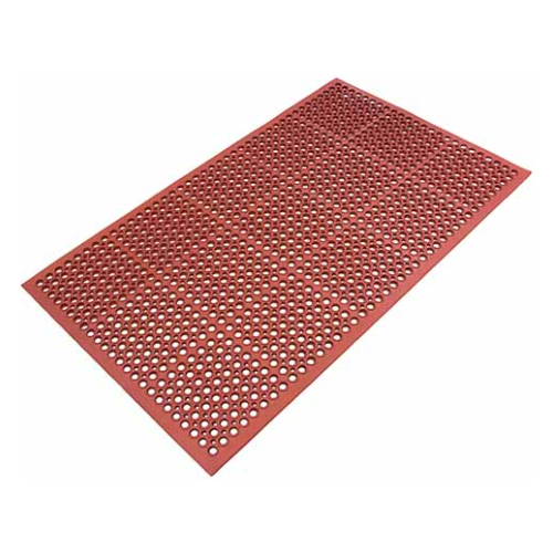 Manufactured from grease-resistant rubber, this mat provides a cushioned standing surface to reduce fatigue while maintaining durability in kitchens and food preparation areas