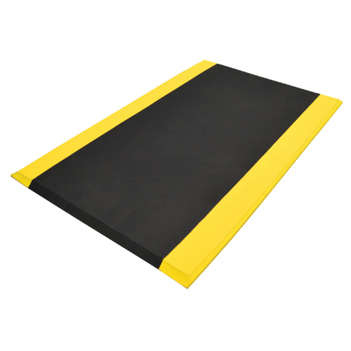 Mattek Ultra Stand Mat with Yellow Border is a durable anti-fatigue mat designed to improve comfort and safety in standing work environments