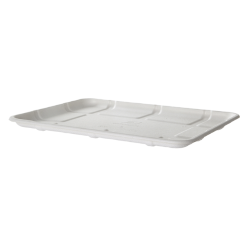 The Vanguard sugarcane Supermarket Trays are strong and both grease and cut resistant