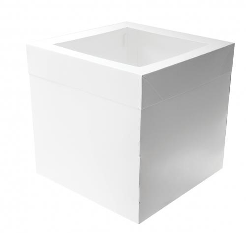 White milkboard 30cm tall cake box with lid and clear window - 12 inch square
