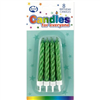 Candles Jumbo Metallic Green W/Holder 8/Pk 431158