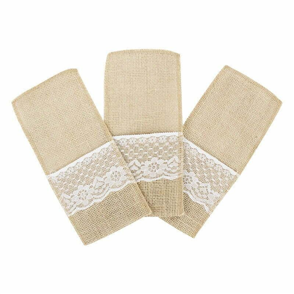 3 LINEN CUTLERY BAG WITH LACE