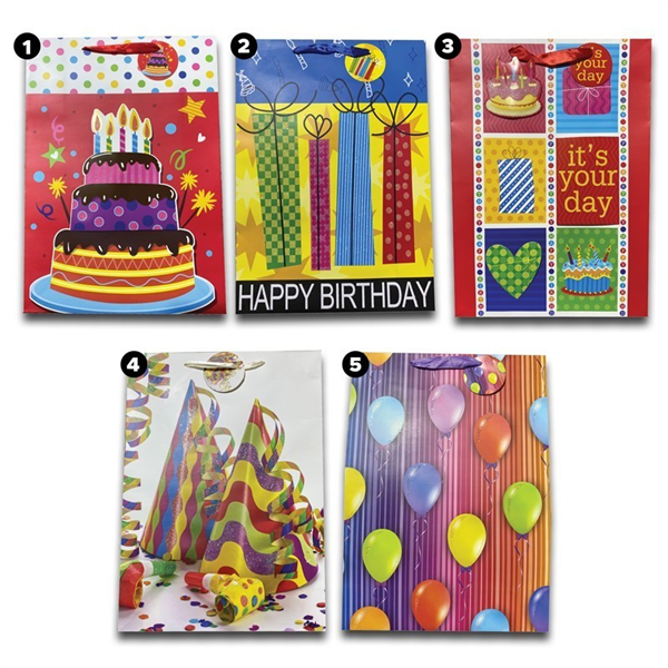 12cm Gusset (Depth) Please choose your Gift Bag design by stating the Number next to the item in the Special Instructions field in the Check Out screen EG: Gift Bag No: 1
