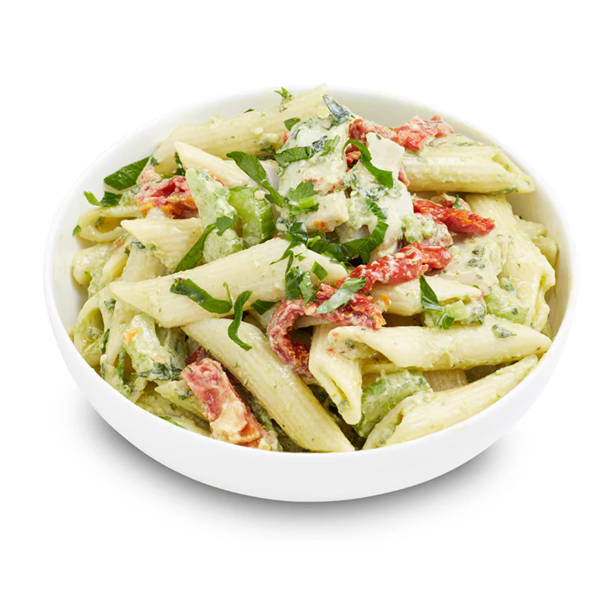 Classic penne pasta, mixed with chicken, celery, sun-dried tomatoes and parsley in a creamy basil mayonnaise