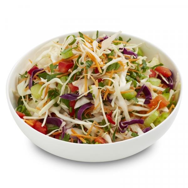 A ready to serve salad consisting of cabbage, carrot, celery, red cabbage, red capsicum & shallots