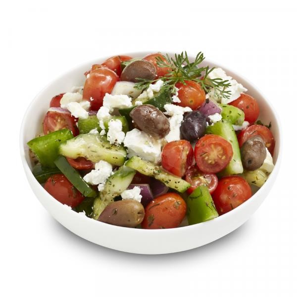 Cherry tomatoes, with crisp vegetables, fresh herbs, olives & feta cheese