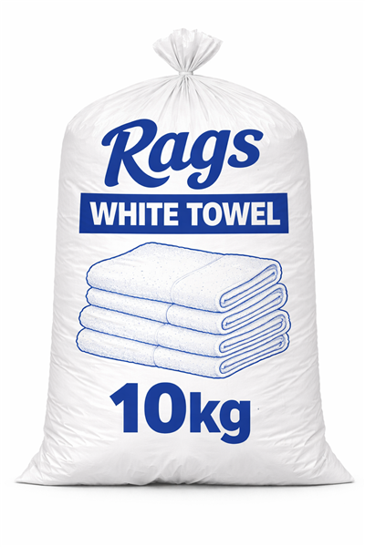 bulk bag consists of cut-up white towelling material, ready-for-use as industrial wiping cloths