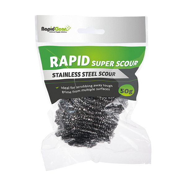 Weighing 50g, it features premium-grade stainless steel coil construction for excellent scouring performance on tough grime and residue