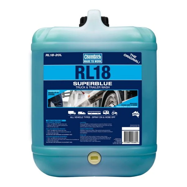 Chemtech RL18 Superblue Truck Wash 20L is a powerful heavy-duty cleaner formulated for washing trucks, trailers and large vehicles