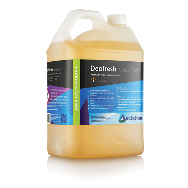 Actichem Deofresh is a professional carpet deodoriser and fragrance booster designed to neutralise tough mal-odours and leave behind a pleasant floral scent