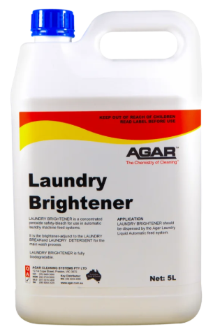 Agar Laundry Brightener 5L is a specialised laundry additive formulated to enhance fabric brightness and whiteness during the wash cycle