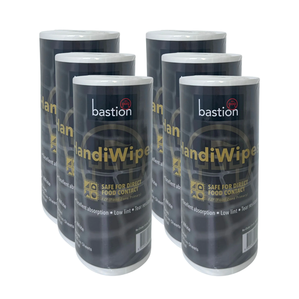 Bastion Handiwipe Roll 45m (White, 90 wipes) is a strong, absorbent multipurpose cleaning cloth designed for wiping, spill control, and general surface cleaning across commercial, industrial, and food-service environments