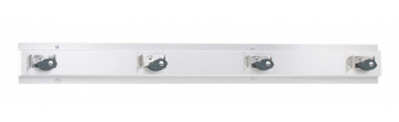 - Guide Specification: Surface-mounted stainless steel mop and broom holder equipped with spring-activated rubber cam holders