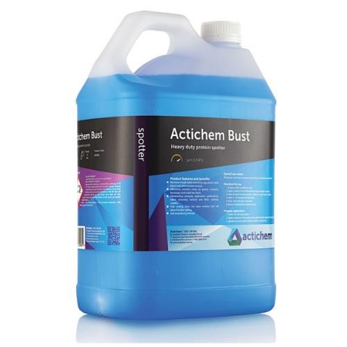 Actichem Bust is a heavy duty protein and blood stain remover, Actichem Bust is a radical strength protein and blood removal formulation which also produces outstanding results on cleaning tough soiling from nylon carpeting, It combines powerful protein dissolving chemistry with super wetting and penetrating technology for bursting through protein soils and releasing them from fibres and hard surfaces
