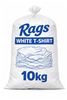 bulk bag is made from repurposed white cotton t-shirt knit material, cut into rag-sized pieces for efficient industrial and maintenance use