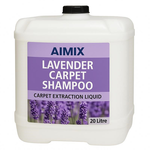 Aimix Lavender Carpet Shampoo is a concentrated liquid detergent designed for use in carpet shampooing and hot water extraction systems